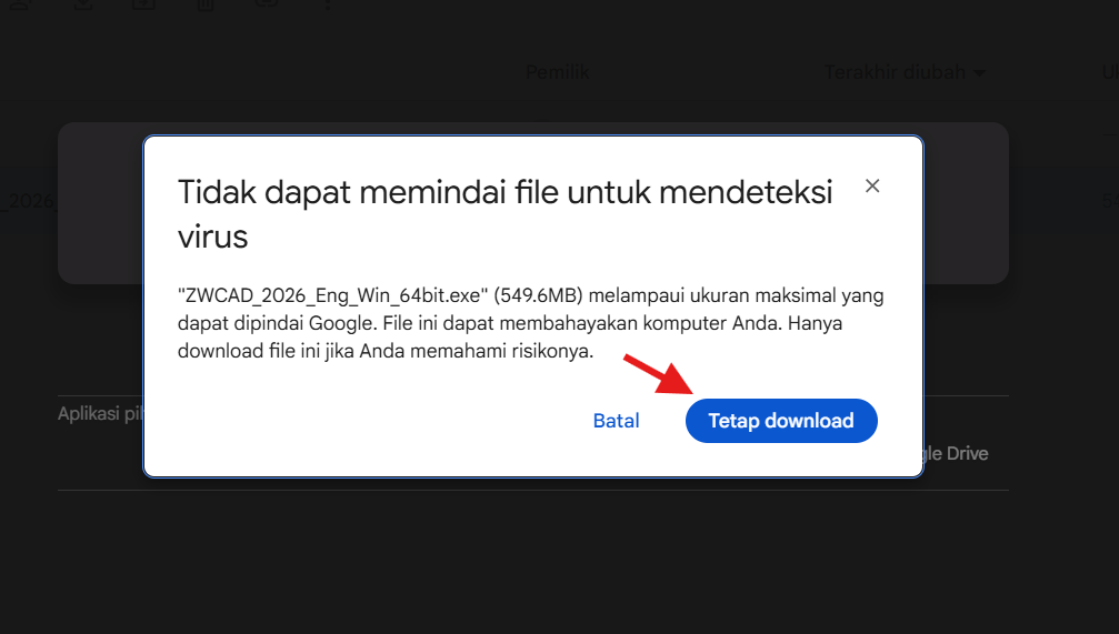 Klik tombol Tetap download untuk melanjutkan langkah berikutnya.