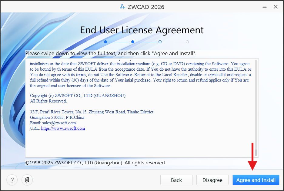 Klik tombol "Agree and Install" untuk melanjutkan proses instalasi.